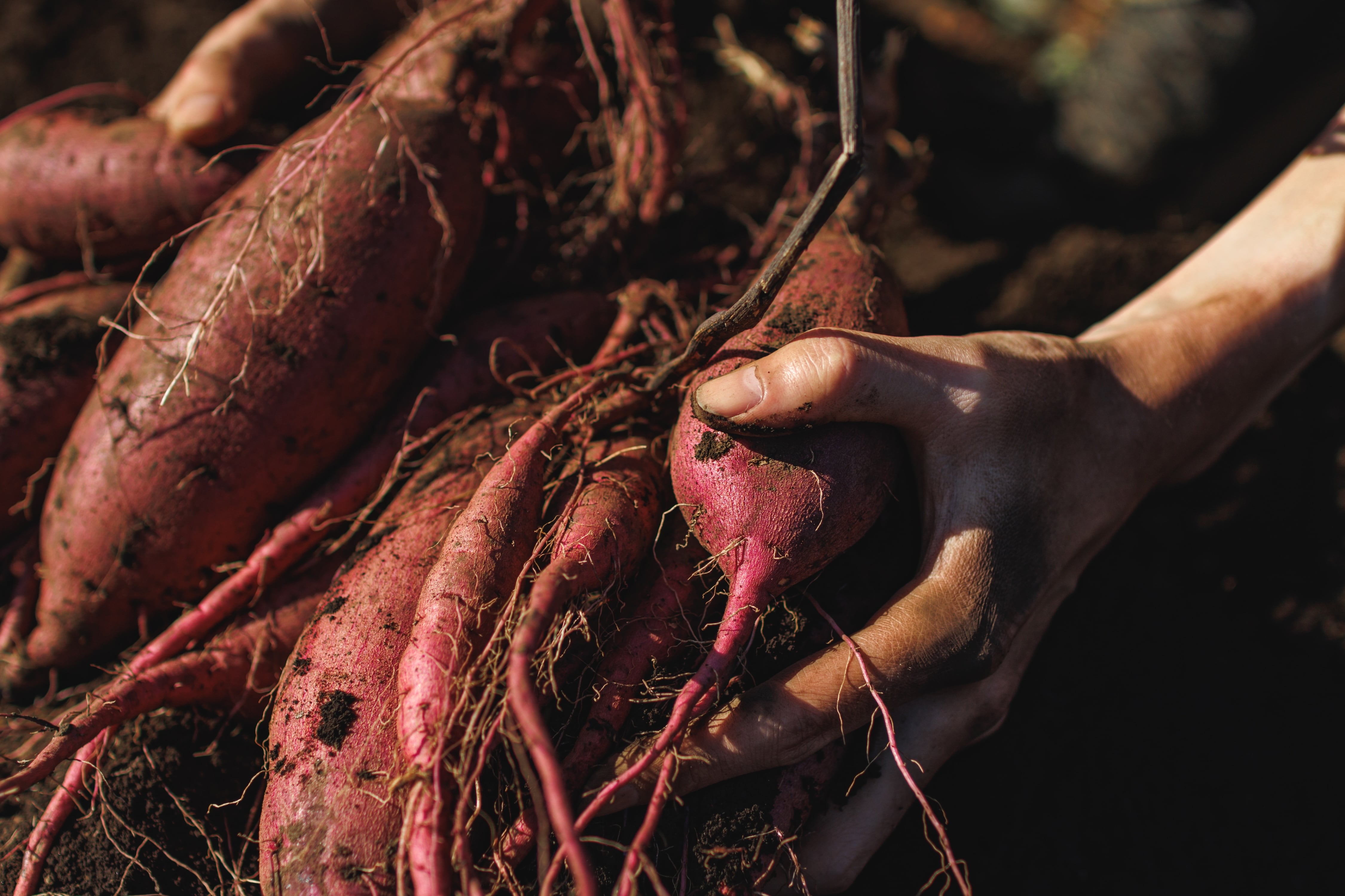 CAMOTEでは夏から掘り始めるので夏の終わり頃から「新芋」をお届けすることができます。